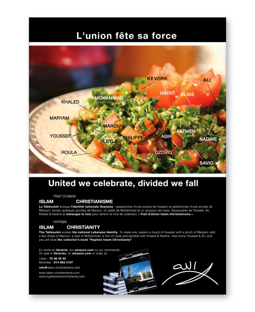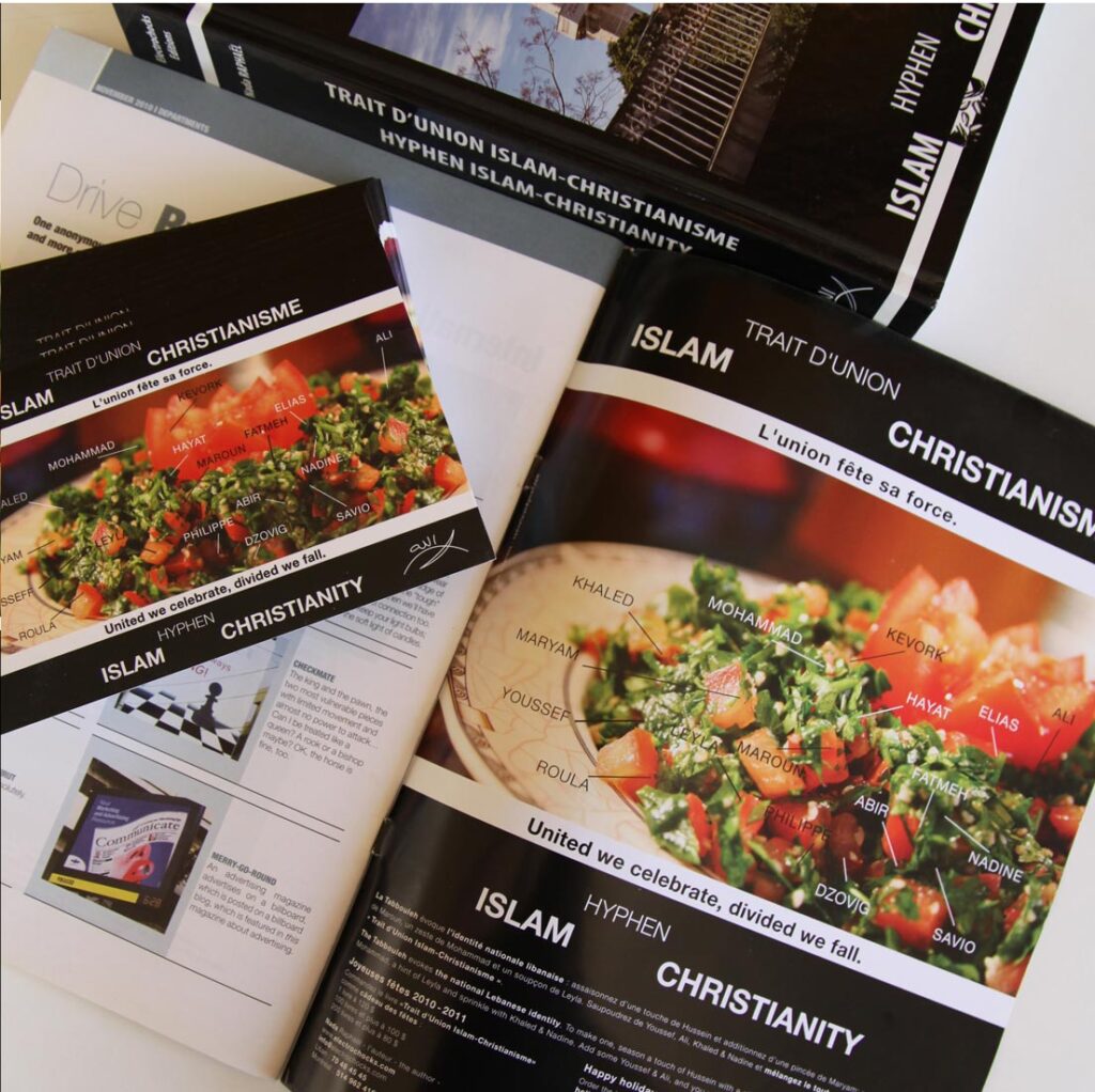 About NC Linkedin Facebook Twitter Youtube Lebanon +961 3 789 791 -- Dubai +971 111 1111 contactus@njoycreations.com BRANDING EVENTS-BTL PUBLICATIONS ONLINE ADVERTISING SOCIAL AWARENESS CAMPAIGN BRANDING EVENTS-BTL PUBLICATIONS ONLINE ADVERTISING SOCIAL AWARENESS CAMPAIGN Hyphen Islam Christianity Book Launching campaignÂ