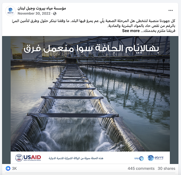 Moreover, our campaigns were designed to empower employees at water establishments throughout Lebanon. They highlighted teamwork, dedication, and the vital role of water professionals in community well-being.